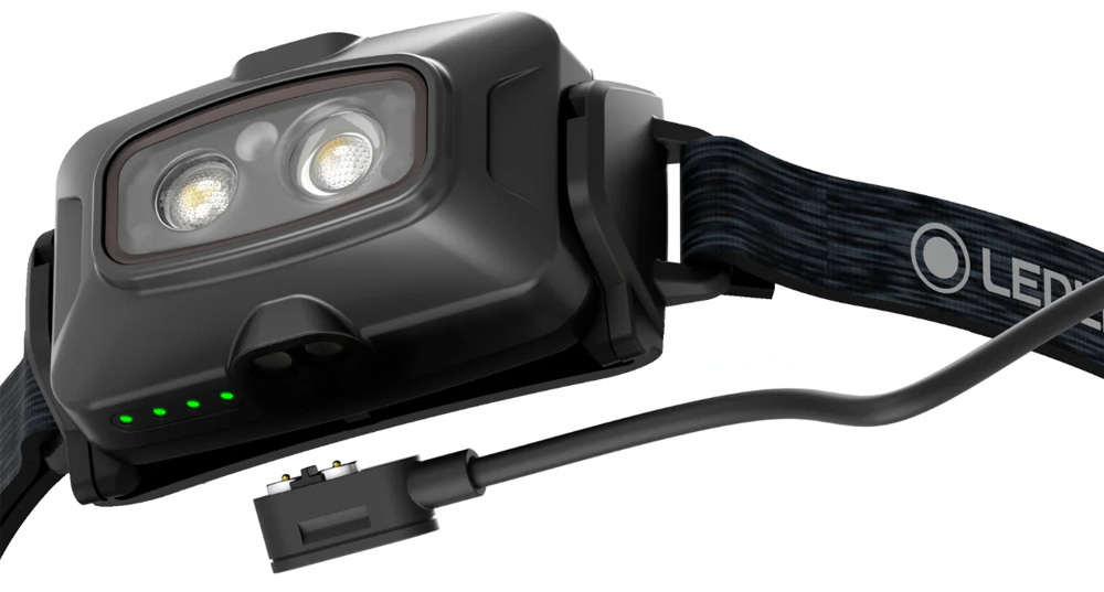 Balenie obsahuje: Ledlenser HF4R CORE, Magnetický nabíjací kábel Type A (USB-C), Adaptér pripojovacieho systému
