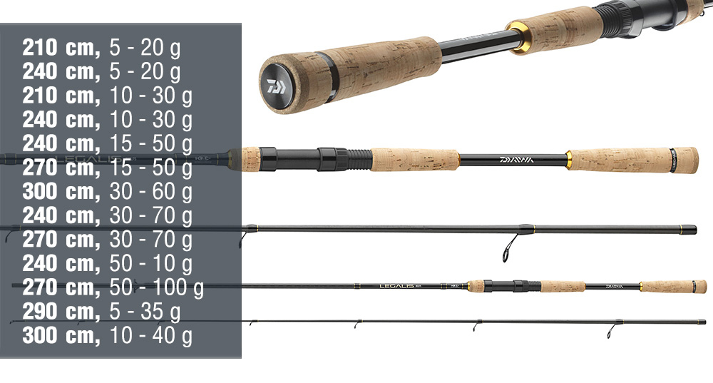 Prúty Legalis od spoločnosti DAIWA kombinujú moderný, nadčasový dizajn s vysoko kvalitnými komponentmi a výnimočným výkonom. Veľmi tenké a rýchle blanky z uhlíkových vlákien HMC+ sú perfektne vyvážené a v ruke pôsobia veľmi ľahko. Umožňujú dlhé a presné nahadzovanie a poskytujú vynikajúcu citlivosť na nástrahu. Rýchle blanky preukazujú svoju silu a pevnosť v každom náročnom boji a umožňujú nahadzovať aj ľahké nástrahy na veľké vzdialenosti. Počas boja ponúkajú veľké výkonové rezervy pre spoľahlivé zdolanie aj veľkých dravcov.Séria prútov Legalis Spin je symbolom spoľahlivej kvality, modernej technológie a univerzálnosti.