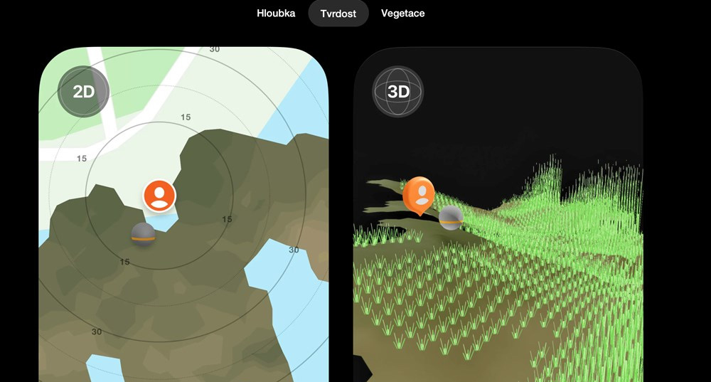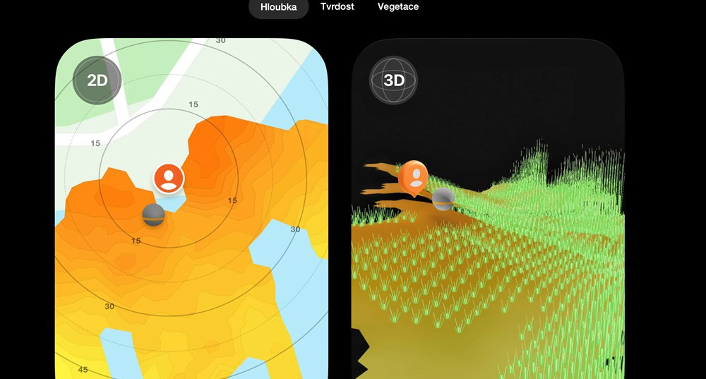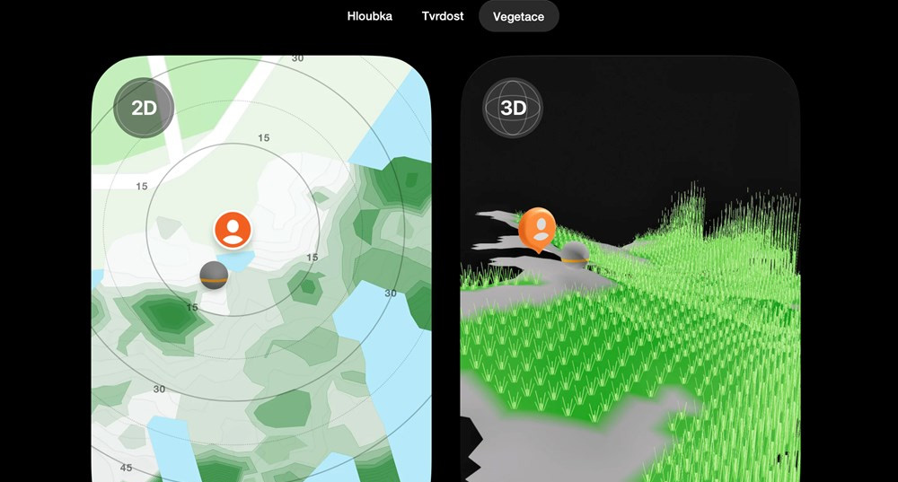 • zobrazenie tvrdosti dna a vegetácie