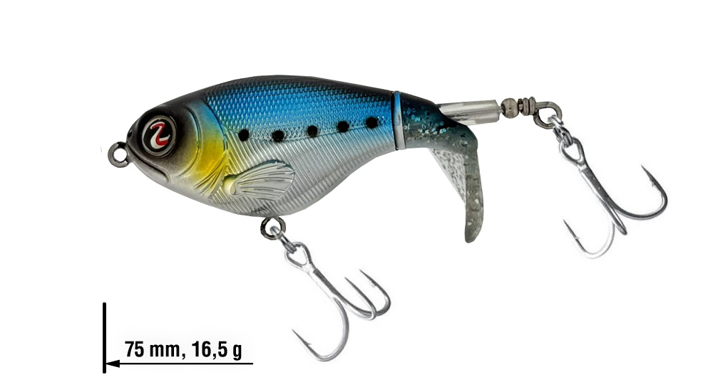 Môžete ho ťahať pomaly, rýchlo, pozastaviť, či rýchlejšie a nepravidelne popoťahovať. Najväčších úspechov a vyprovokovaných záberov sme však mali pri plynulom a pomalom priťahovaní. Priťahujte Whopper tak, aby sa lopatka točila a stále plávala konštantnou rýchlosťou. Všetky varianty Whopper Plopper sú už osadené kvalitnými X-Strong trojháčikmi.