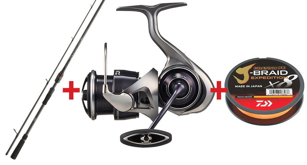 Kombinácia legendárneho japonského navijaka DAIWA CALDIA LT MQ, úplne nového a kompletne prepracovaného prútu DAIWA Ballistic Air, ktorý posúva hranice v rýchlosti a citlivosti, a hladkej japonskej šnúry so silikónovým povrchom J-Braid Expedition.